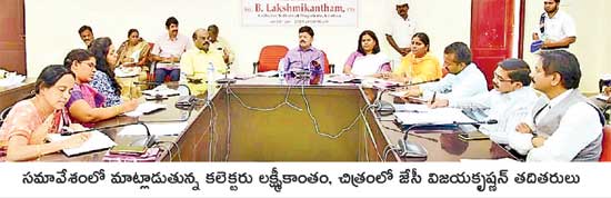విజయవాడ సబ్కలెక్టరేట్, గొడుగుపేట, న్యూస్టుడే: జిల్లాలో పెథాయ్ తుపాను నష్టం వివరాల పరిశీలనకు కేంద్ర ప్రతినిధుల బృందం ఈనెల 31న పర్యటించనున్నట్లు కలెక్టర్ బి.లక్ష్మీకాంతం తెలిపారు. ఈ క్రమంలో నష్టం వివరాలను తెలిపేందుకు ఆయా శాఖల అధికారులు సన్నద్ధంగా ఉండాలని ఆదేశించారు. నగరంలోని తమ విడిది కార్యాలయంలో మంగళవారం నిర్వహించిన సమావేశంలో కలెక్టర్ మాట్లాడుతూ.. ఉయ్యూరు, పెడన, మొవ్వ మండలాల్లో వ్యవసాయం, ఉద్యాన, విద్యుత్తు, ఆర్ అండ్ బి రహదారులు దెబ్బతిన్న ప్రాంతాలను పరిశీలిస్తారని పేర్కొన్నారు. విజయవాడ నుంచి బయల్దేరే బృందం తొలుత ఉయ్యూరు మండలం పెదఓగిరాలలో దెబ్బతిన్న అరటి క్షేత్రాలను పరిశీలిస్తారని తెలిపారు. మొవ్వ, గూడూరు ప్రాంతాల్లో రంగు మారిన ధాన్యం తదితరాలను పరిశీలిస్తారని వివరించారు. రైతులతో నేరుగా మాట్లాడతారని, ఈసందర్భంగా ఫొటో ఎగ్జిబిషన్లు ఏర్పాటు చేసుకోవాలన్నారు. ఒక బస్సులో బృందంతో పర్యటించేలా ఏర్పాట్లు చేసుకోవాలన్నారు. సమావేశంలో జేసీ విజయకృష్ణన్, జేసీ-2 పి.బాబూరావు, విజయవాడ ఉపకలెక్టర్ మిషాసింగ్, డీఆర్వో లావణ్యవేణి, గుడివాడ ఆర్డీవో సత్యవాణి తదితరులు పాల్గొన్నారు.
