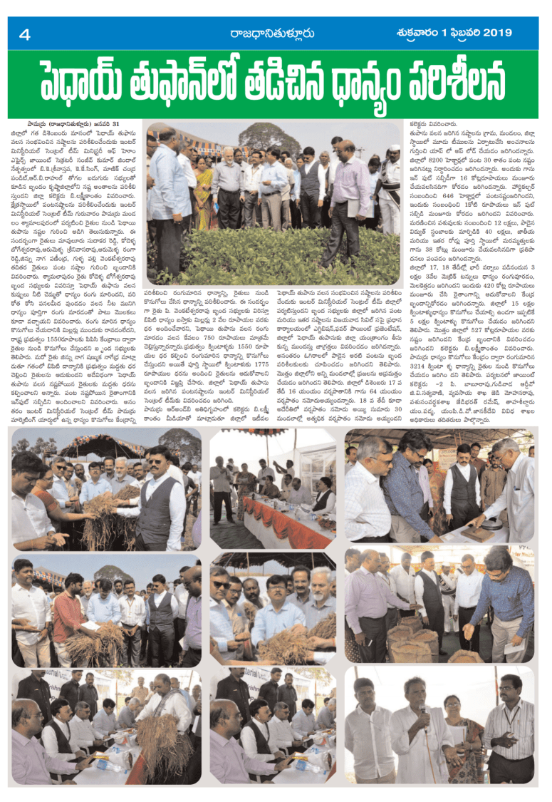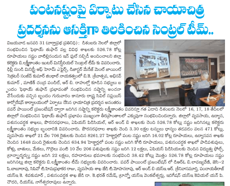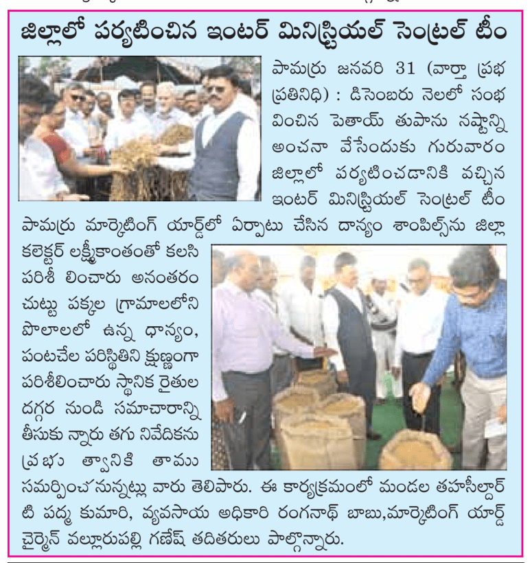 జిల్లాకు కేంద్ర బృందంపెథాయ్ తుపాను నష్టం వివరాల పరిశీలన