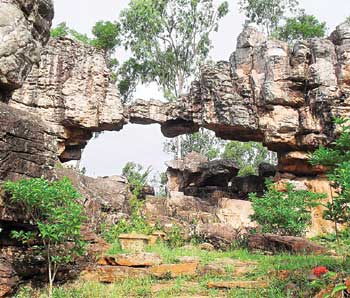 ఏడు కొండలపై మరో అద్భుతం శిలాతోరణం. 150 కోట్ల సంవత్సరాల నాటి పురాతన శిలలు స్వాగత తోరణంగా కనిపించడం ఆశ్చర్యం కలిగిస్తుంది. 15 అడుగుల ఎత్తు, 25 అడుగుల వెడల్పుతో కనువిందు చేస్తుంది. తిరుమల ఆలయానికి కిలోమీటరు దూరంలోనే ఉంటుంది. ఈ తోరణాన్ని తాకడాన్ని ప్రభుత్వం నిషేధించింది. దూరం నుంచి చూడొచ్చు. అక్కడి నుంచి నేరుగా పైకి వెళ్తే.. శేషాచలంలోని చిట్టచివరి కొండగా, తిరుమల ఆలయం కన్నా ఎత్తులో ఉన్న నారాయణాద్రిపై శ్రీవారి పాదాలు కనిపిస్తాయి. వైకుంఠం నుంచి వచ్చిన నారాయణుడు తిరుమలలో మొదట కాలుమోపిన ప్రదేశమిదేనని చెబుతారు. ఇక్కడి నుంచి తిరుమల పరిసరాలన్నీ చూడొచ్చు. |